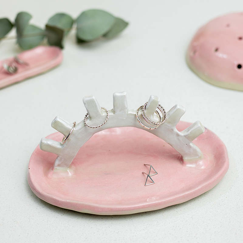 A ceramic ring holder created by the talented Una pottery. This holder is ideal for rings.